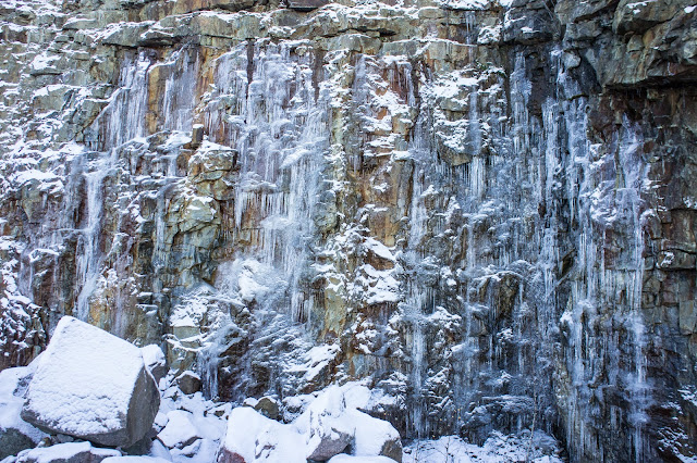 Hinku päästä mäkeen oli siis kova, ja siihen riitti tällä kertaa 2 päivää pakkasta. Kyllähän mä tiesin ettei putoukset vielä liidikunnossa ole, mutta jos edes vähän pääsisi nakuttelemaan. Ja parempi se on aina käydä paikanpäällä ku kotona miettiä että olisko siellä jäätä vai ei.